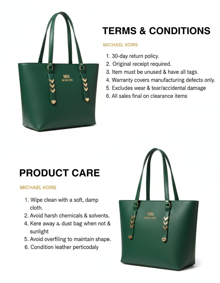 Elevate your style with this striking Michael Kors tote bag in a sophisticated deep forest green hue. Perfect for the modern individual who values both fashion and functionality, this large tote is crafted from high-quality, textured pebbled leather (or high-quality faux leather, if applicable) for a luxurious feel and lasting durability.