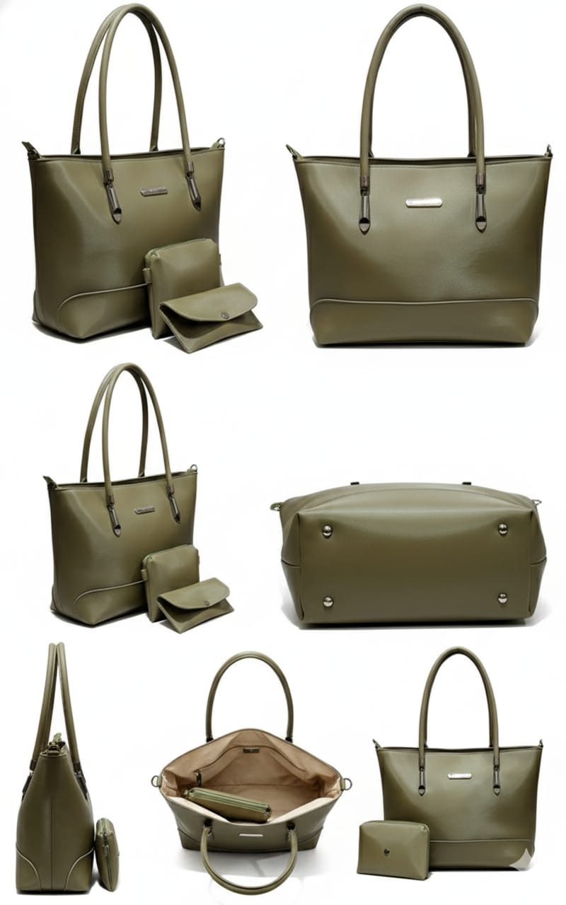Elevate your style and organization with the versatile 3-in-1 Olive Green Tote Set.