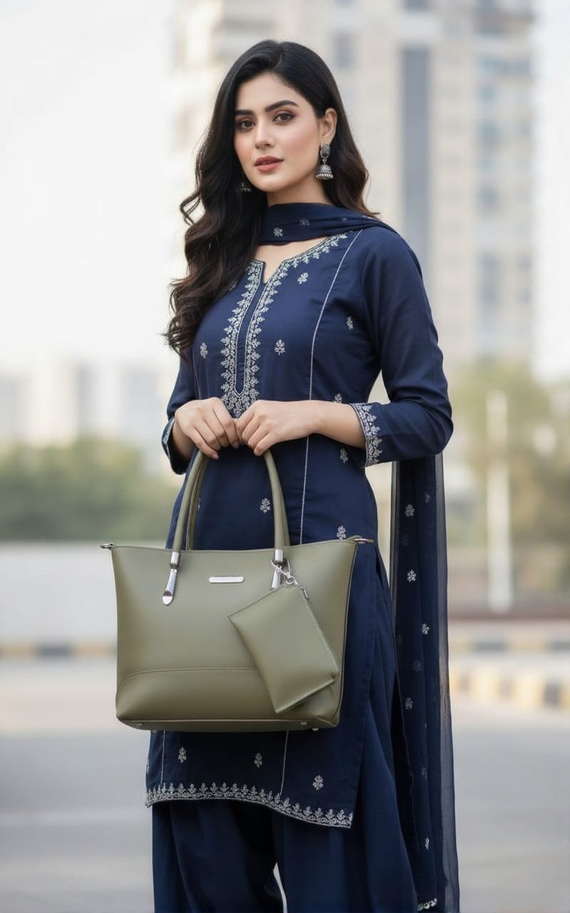 This sophisticated olive green tote bag is an essential piece for the modern, busy woman. Crafted from sleek, high-quality faux leather, its polished look effortlessly transitions from the office to weekend errands. The structured, yet spacious design offers generous capacity for your laptop, documents, and all daily necessities, making it the perfect everyday shoulder bag or work tote.