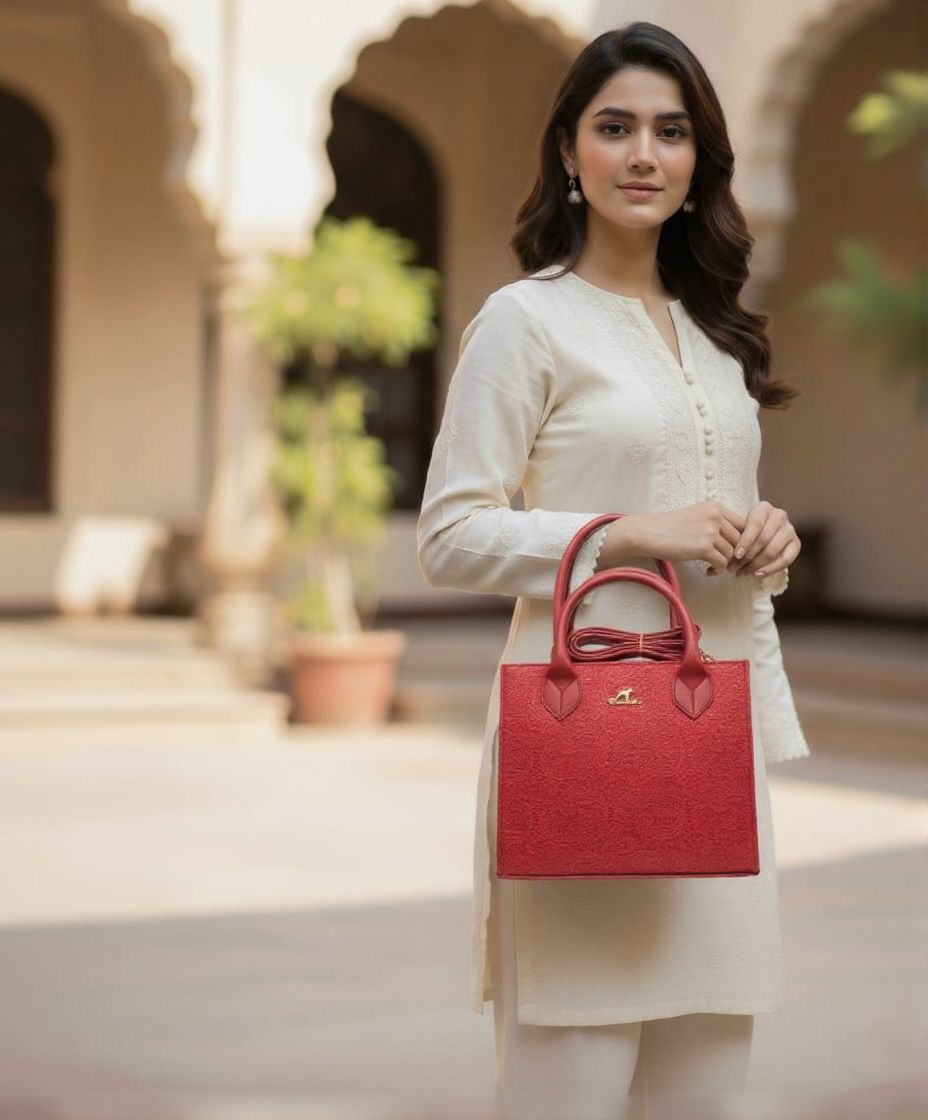 Add this gorgeous red lace satchel to your collection and turn heads wherever you go!