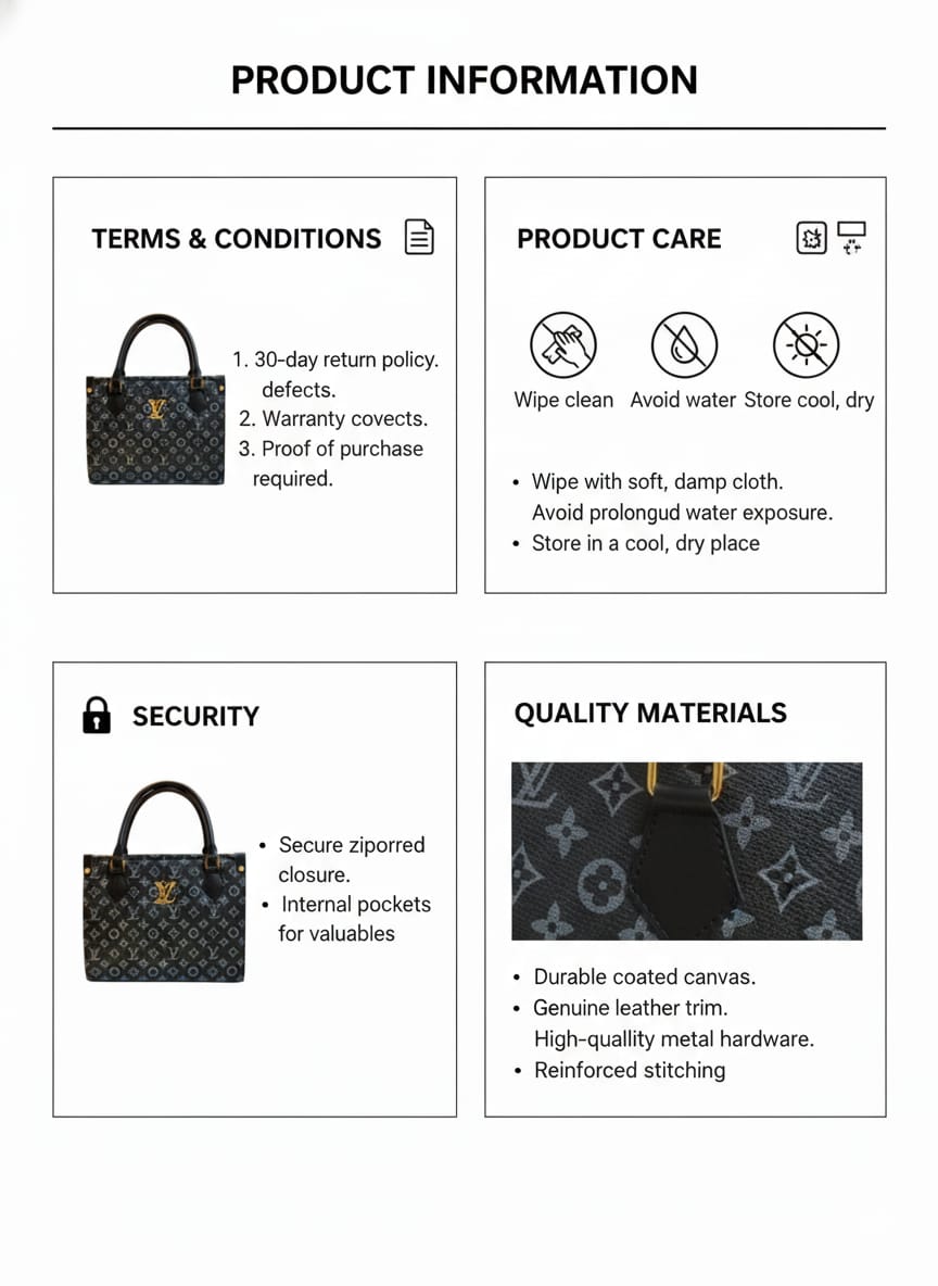 Functional & Secure: With its spacious, organized interior and secure zip closure, this bag is large enough for your essentials while keeping everything safe and tidy. The firm base allows it to stand upright, making it practical and elegant.