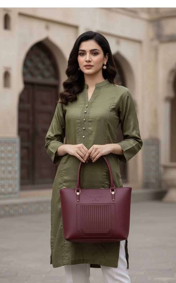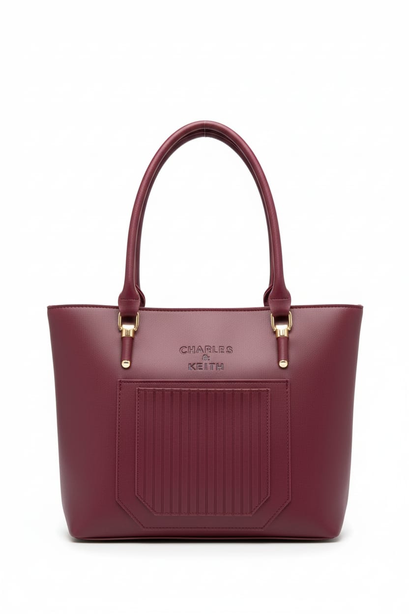 Versatile Carrying: Equipped with comfortable top handles for easy hand or forearm carrying, and ready with side attachments to convert it into a shoulder or crossbody bag (strap not shown but implied), offering multiple styling options.