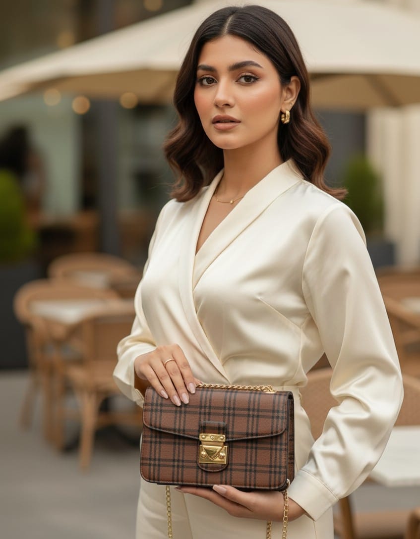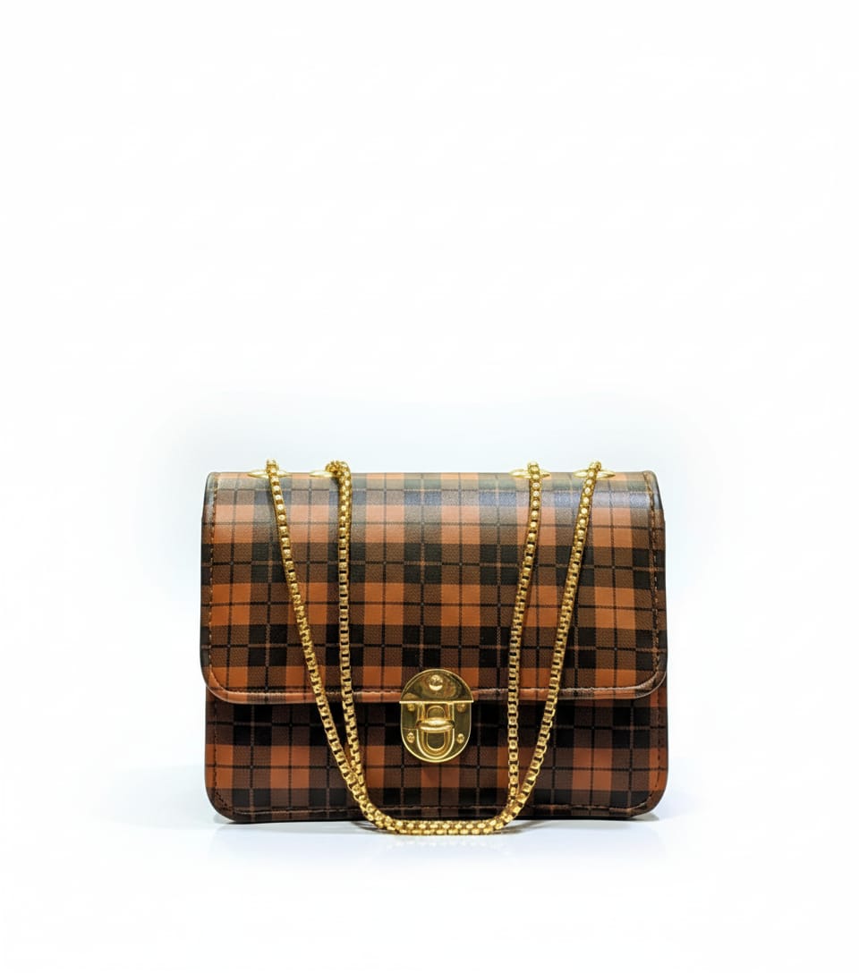 Elevate your look with the distinctive charm of this Chic Plaid Crossbody Bag. Featuring a striking brown and black checkered pattern, this compact shoulder bag is the perfect blend of vintage flair and modern sophistication.